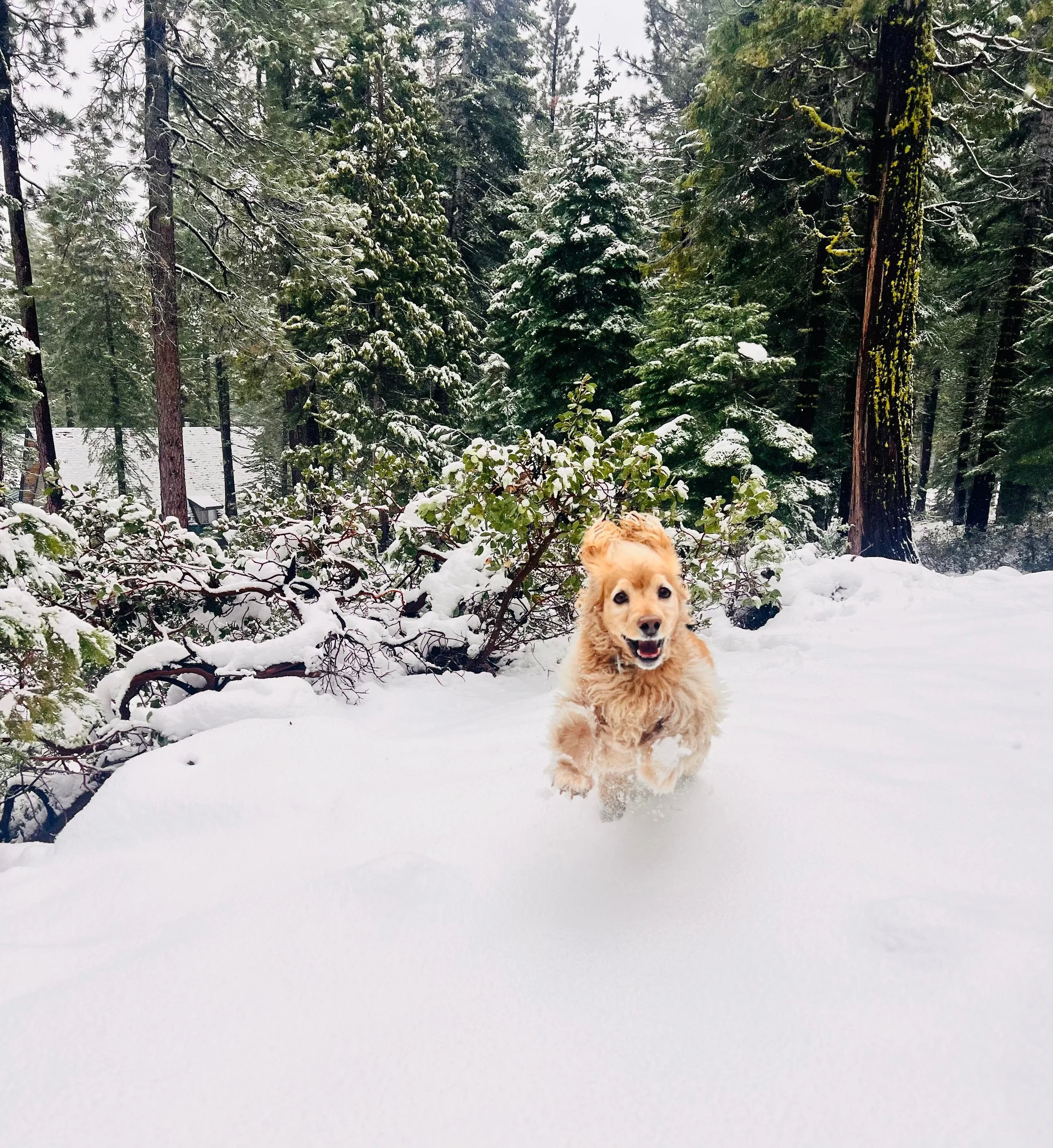 Photo credit: Our dog, Rama, frolicking in the snow at Lake Tahoe, courtesy of my very talented wife Alisha Peterson-Irwin.